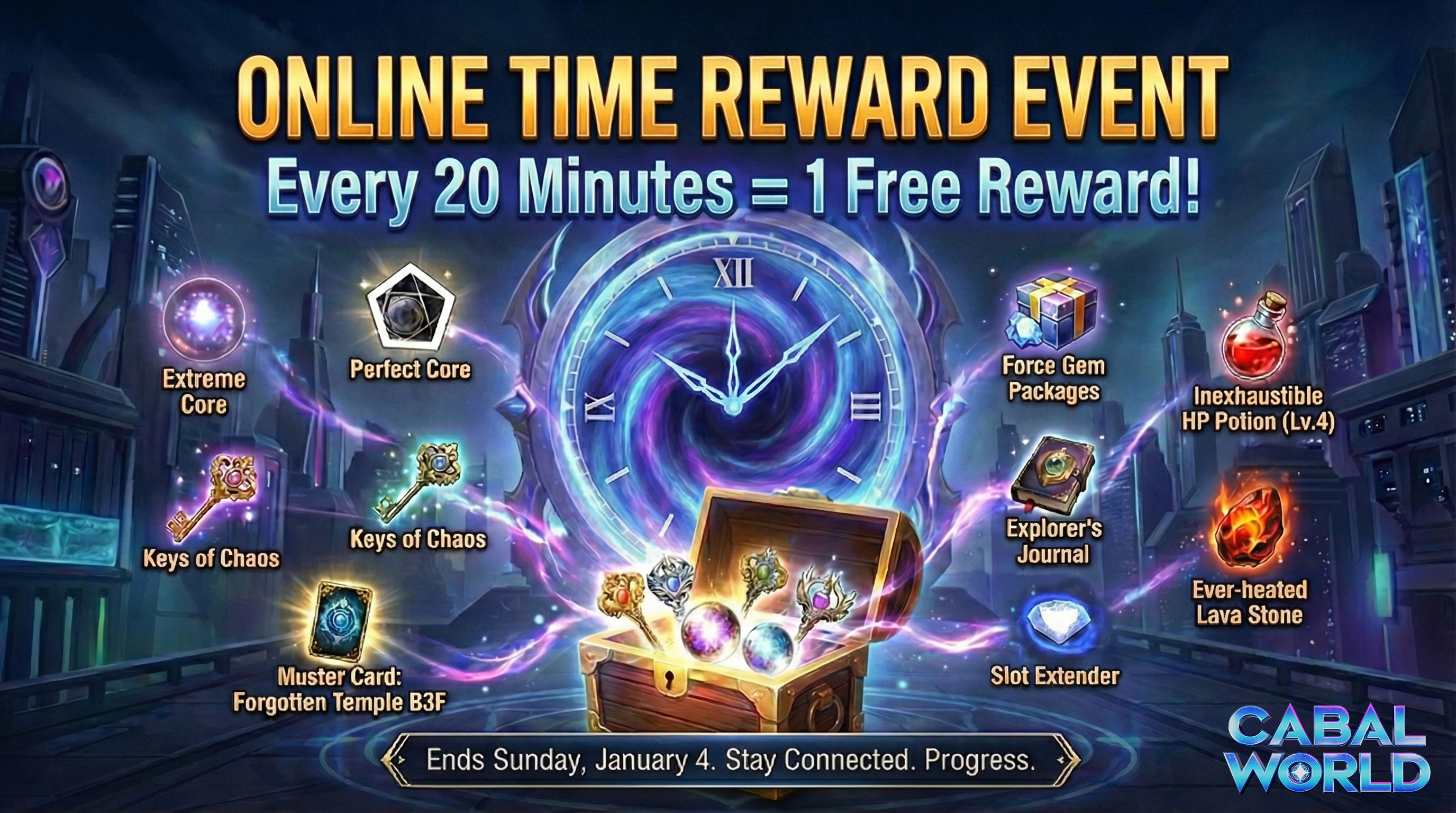 A new duration-based event is now live. βοΈ How it works π’ Stay online in-game. β±οΈ Every 20 minutes, you receive 1 free reward. π¦ Rewards are sent directly to your Cash Inventory. β No actions requi...