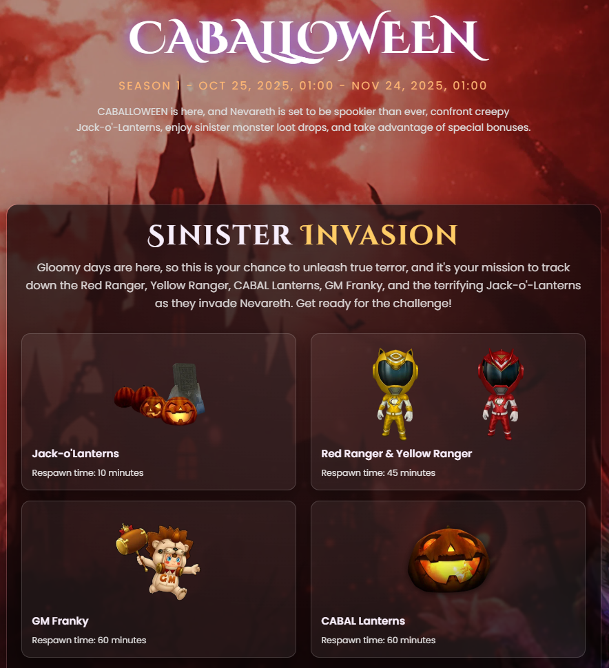 Hey Cabal World, Adventurers! π Weβve just rolled out a Mini Patch with a small but exciting addition and an important fix! π Additions: π¦ Enjoy the haunting Caballoween Cabal theme! π» In Game Br...